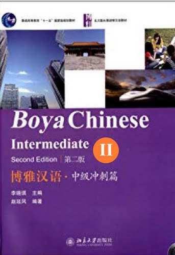 Boya Chinese: Intermediate Spurt II (博雅汉语中级冲刺篇), Second Edition. Li Xiaoqi, Chief Editor. Published in 2016 by Peking University Press. 210 pages. Contains 20 lessons and 1078 words. ISBN#: 978-7-301-25237-6.